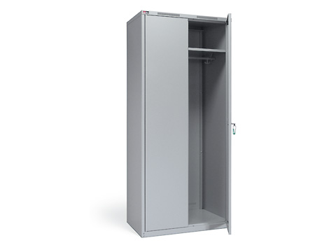 | Шкаф металлический, разборный. Шкаф предназначен для одного работника, имеет два отделения для «чистой» и «грязной» одежды. Двери закрываются одним общим замком.
